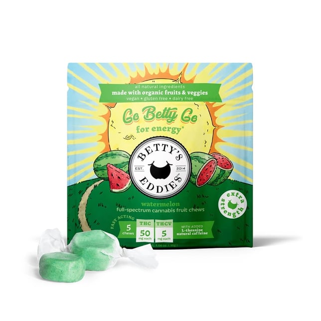 Betty’s knows best - put some pep in your step! Our Go Betty Go watermelon chews are energetically infused with L-theanine, natural caffeine from coffee, and a blend of THC and THCV to help you go, go, go!